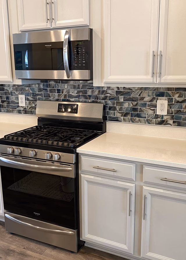 Backsplash and Lighting: The right backsplash elevates your entire kitchen. We help you select materials, patterns, and layouts that complement your cabinetry and countertops while adding personality and protection. Our lighting design incorporates layered solutions including task lighting for work areas, ambient lighting for overall illumination, and accent lighting to highlight architectural features.